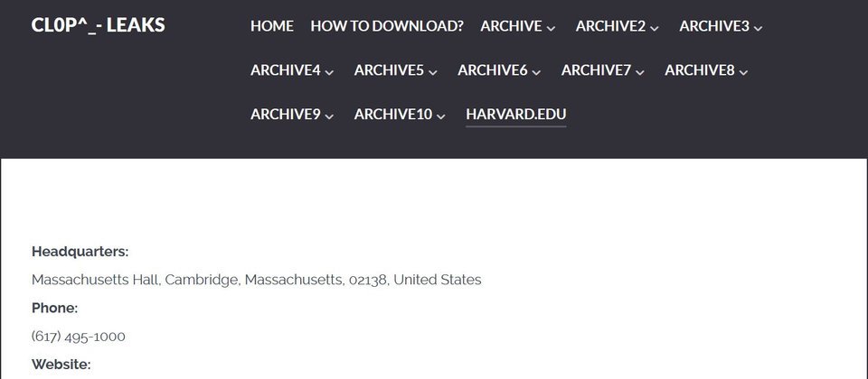 根據資安新聞網站Bleeping Computer的報導,近日Clop將哈佛大學列於資料外洩網站,疑似透過ERP系統Oracle E-Business Suite(EBS)零時差漏洞而得逞。對此,哈佛大學表示他們正著手調查。