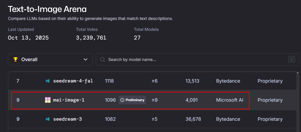 現在MAI-Image-1已在LMArena上開放公測,並預計很快會將其透過Copilot和Bing Image Creator開放給用戶。