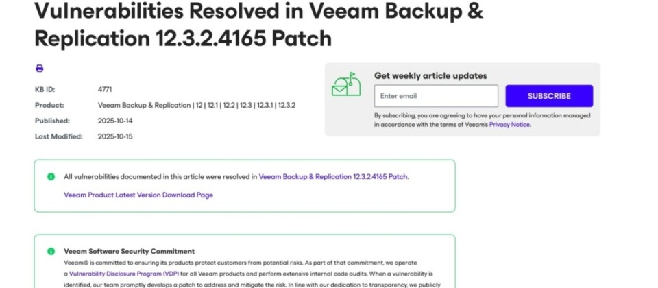 前述兩個漏洞會影響Veeam Backup & Recovery備份軟體版本,主要是在12.x當中,12.3.2.3617以前的版本,解決方法是將備份軟體更新到12.3.2.4165版。