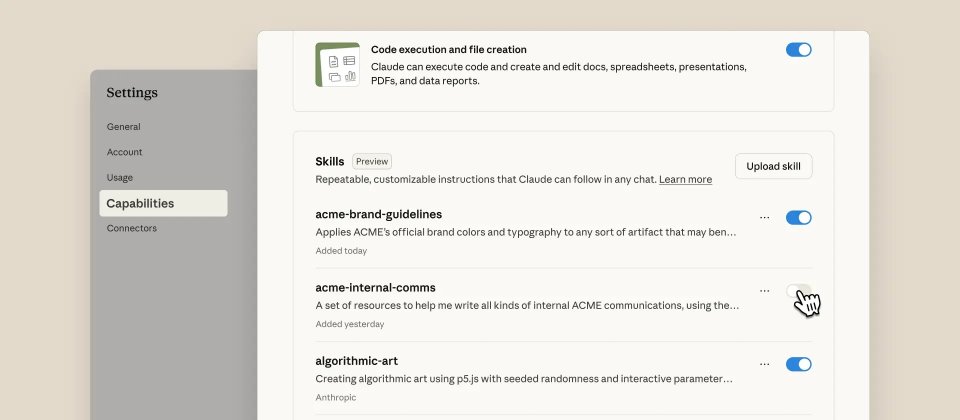 Anthropic表示企業管理者可於組織層級啟用Skills功能,個別成員仍需再行同意後使用。開發者則可透過Messages API管理自建技能,並執行版本控管。Anthropic提供名為skill-creator的指引技能,透過對話產生資料夾結構與Skill.md說明檔,免去手動編輯,降低上手門檻。