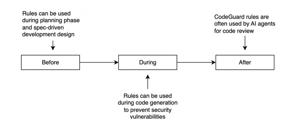 CodeGuard中的規則可跨流程發揮作用,以輸入驗證為例,規則在程式碼生成中建議安全處理樣式,在互動過程即時標示可疑輸入流程,生成後再確認是否具有適當的過濾與驗證。秘密管理則避免產生寫死的憑證,偵測敏感資料樣式,並驗證憑證是否外部化與安全配置。官方提醒規則並不保證個別輸出絕對安全,標準工程實務仍應並行。