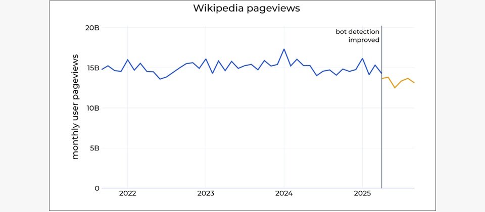 維基媒體基金會(Wikimedia Foundation)上周五(10/17)表示,今年維基百科(Wikipedia)的全球人類瀏覽量下滑約8%,主要是因為生成式AI與搜尋引擎直接顯示答案,改變了用戶搜尋資訊的方式。