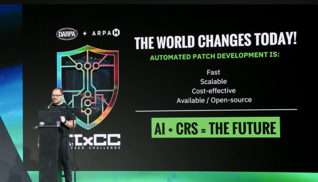 從CGC到AIxCC,2024年終確認AI自動發現漏洞可行性,到了2025年有重大轉變,進一步強調發展AI自動生成修補的能力,也重視準確率、修補速度,甚至是成本效益。(圖片來源/DARPAtv)