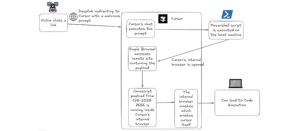 為了驗證這樣的問題,OX Security利用Google已經在今年7月於Chromium修補的資安漏洞CVE-2025-7656,對Cursor發動攻擊,並導致這些IDE出現阻斷服務(DoS)的現象。他們透過引誘受害者點選深層連結(deeplink)的方式進行,此功能可讓用戶與他人共用提示(prompt)及命令。