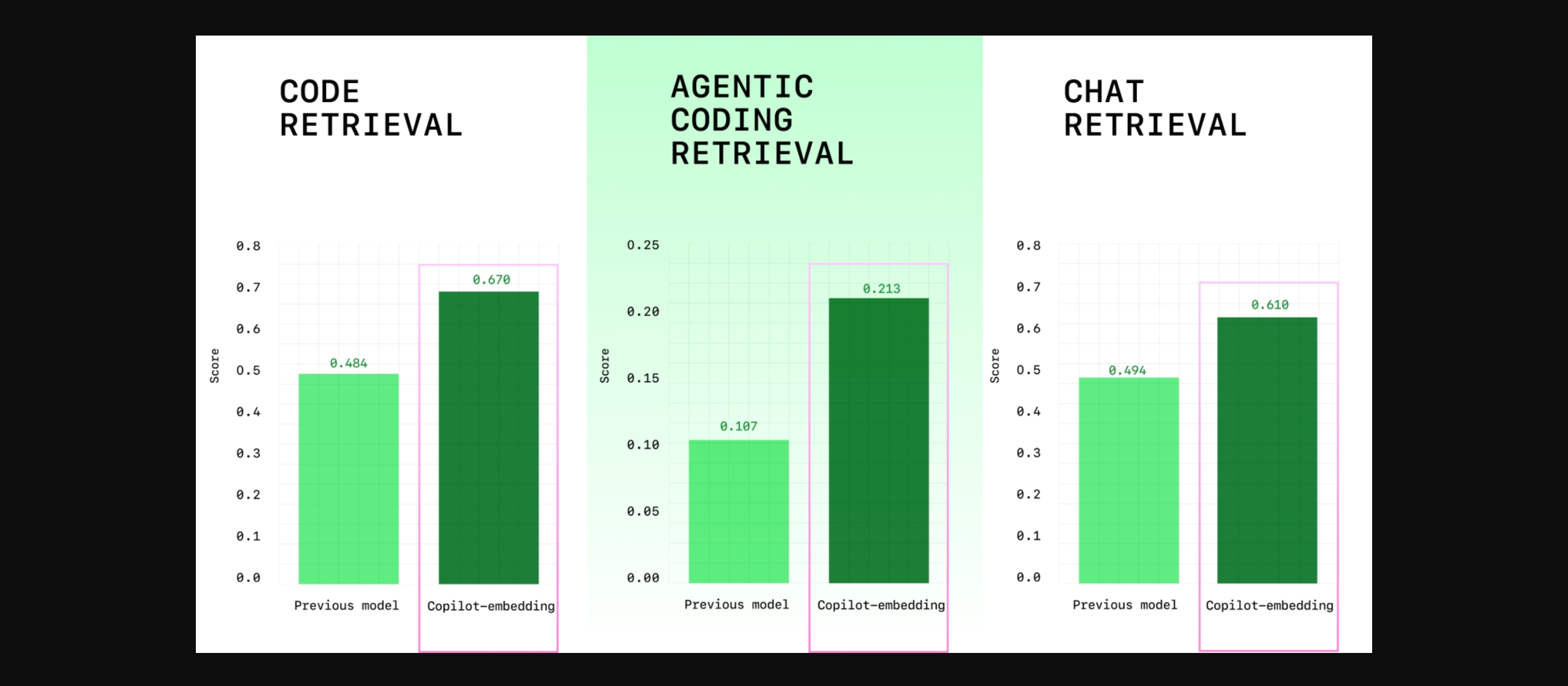 GitHub發布新的Copilot嵌入向量模型,主打在VS Code中更精準即時地找出與開發者意圖相符的程式碼片段,同時降低本機與伺服端的記憶體負擔。官方測試顯示,檢索品質提升37.6%,嵌入(Embedding)吞吐量提升約2倍,索引記憶體占用約為原本的八分之一,預期可讓Copilot聊天與代理回應更準確,結果回傳更快,並減少在大型專案上的資源消耗。