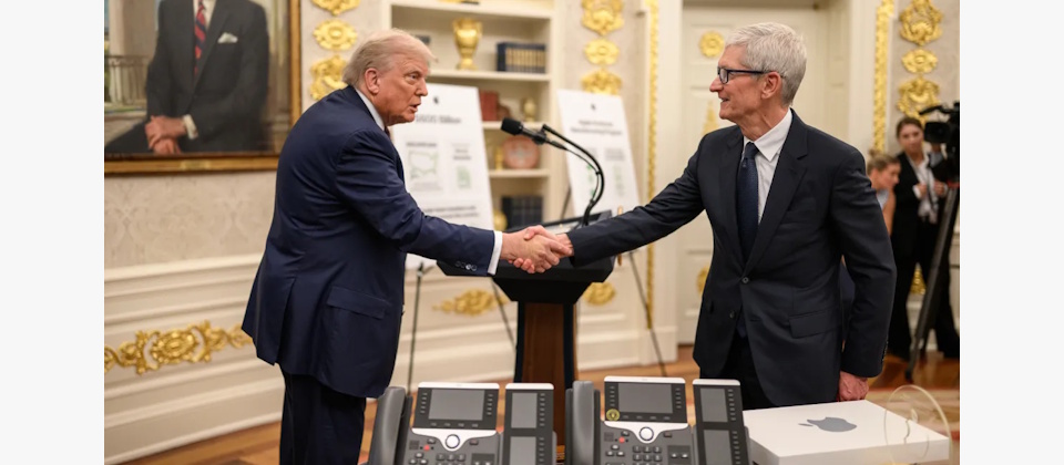 蘋果響應川普強力推動製造業回流美國政策,於今年初宣佈擴大美國進階製造基金(Advanced Manufacturing Fund),投資5000億美元,包括支援在美國13州生產其產品。8月蘋果再將投資金額擴大為6000億美元。