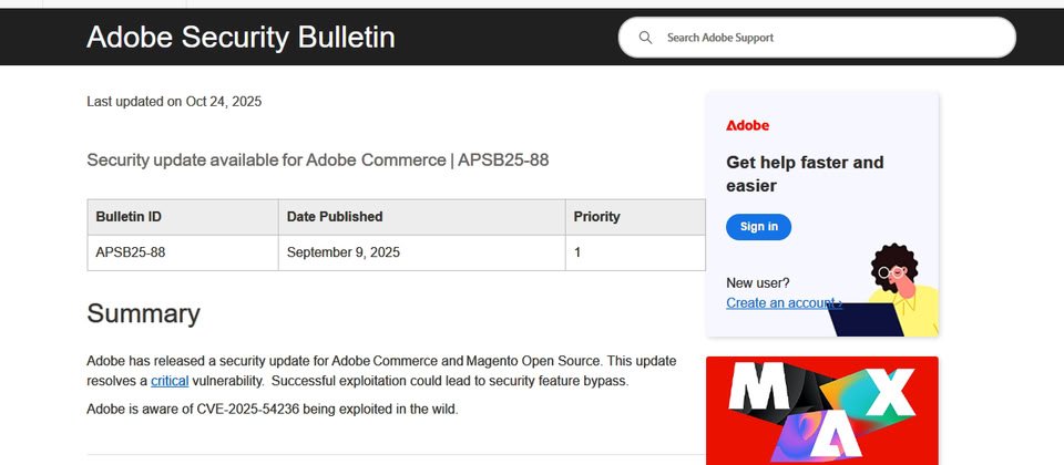 今年9月,Adobe修補電子商務管理平臺Adobe Commerce及Magento的重大層級漏洞CVE-2025-54236(CVSS風險評分為9.1),將此漏洞命名為SessionReaper的資安業者Sansec提出警告,近期已出現漏洞利用的情況,但目前仍有超過六成的電子商務管理平臺尚未修補,而成為駭客潛在的目標。