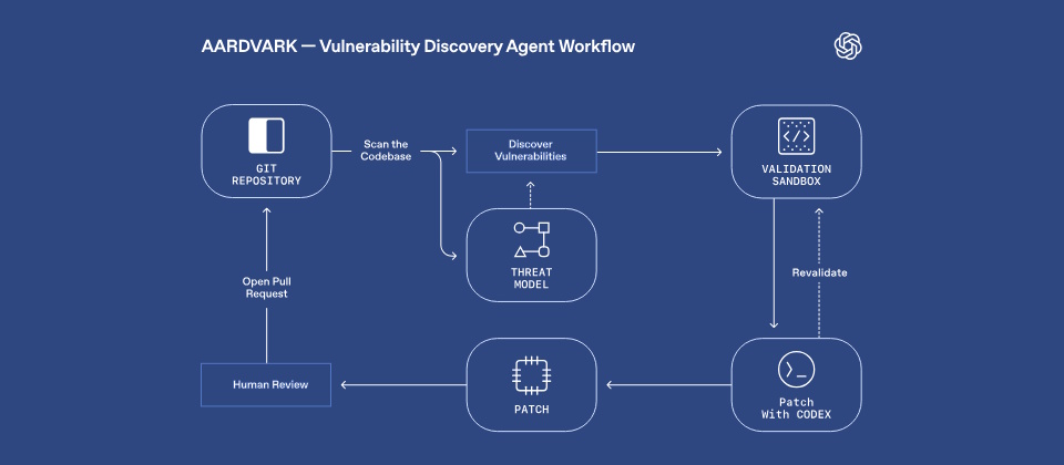 OpenAI周四(10/30)發表了基於GPT-5的AI資安工具Aardvark,它能像人類資安專家一樣分析程式碼、找出漏洞並自動提出修補方案。