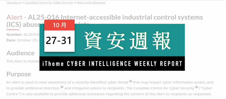在2025年10月第五星期的資安新聞中,針對關鍵CI的威脅態勢值得特別留意,加拿大網路安全中心10月29日示警,近期發生多起水利與能源設施遭受干擾事件,包括水廠的水壓數值遭竄改,石油天然氣的自動油槽量測系統ATG被操控,還有農場的穀物乾燥塔溫濕度也被修改,顯現駭客正鎖定可直接連網的工控系統進行操弄的態勢,我們呼籲各界強化監測與存取控制。