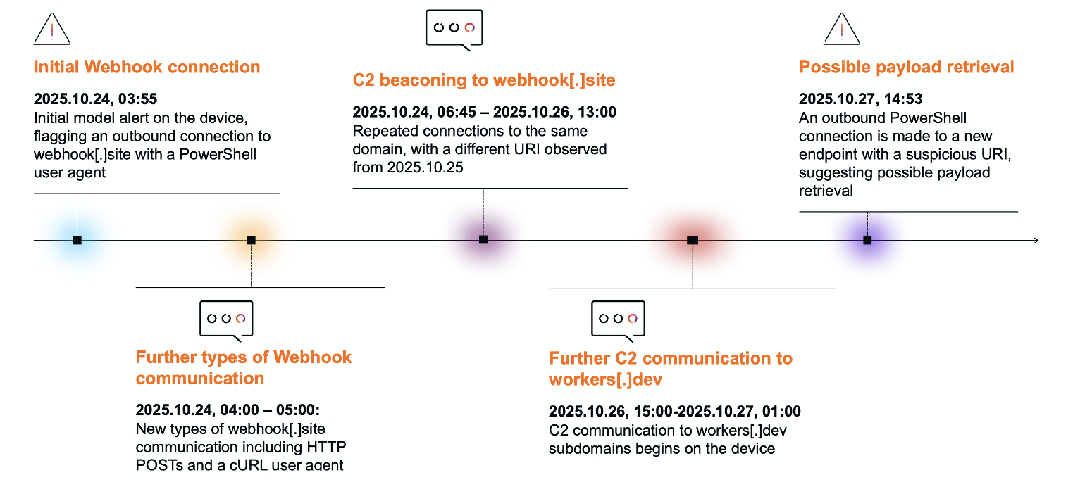 另一項值得注意的消息,是漏洞利用的攻擊行動,駭客鎖定的是微軟在10月例行更新(Patch Tuesday)之後發布額外修補程式的WSUS資安漏洞CVE-2025-59287,資安業者Darktrace已發現相關攻擊行動,其中一起受害組織被植入竊資軟體Skuid。