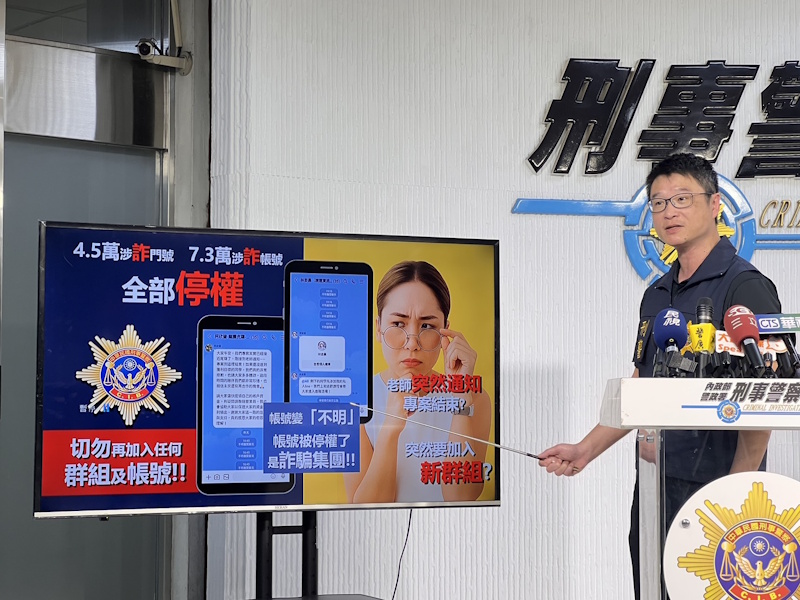 「從源頭斬斷詐騙鏈條!」刑事局在記者會上特別強調這次大規模停權成果的意義。