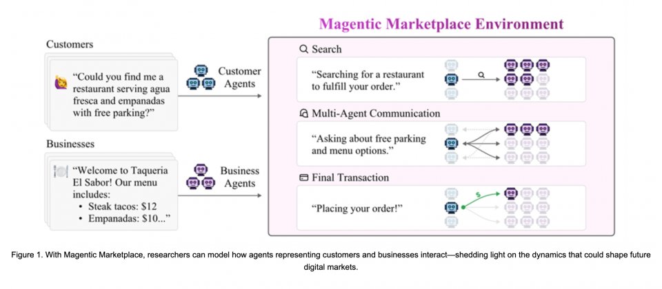 微軟研究院開源名為Magentic Marketplace的模擬環境,讓研究人員能在可控的虛擬市場中觀察人工智慧代理的互動行為,並量化其對消費者福利、市場效率與抗操弄能力的影響。該開源計畫提供學界與產業一個安全沙箱,在真實市場出現問題之前,預先觀察代理帶來的潛在效應。