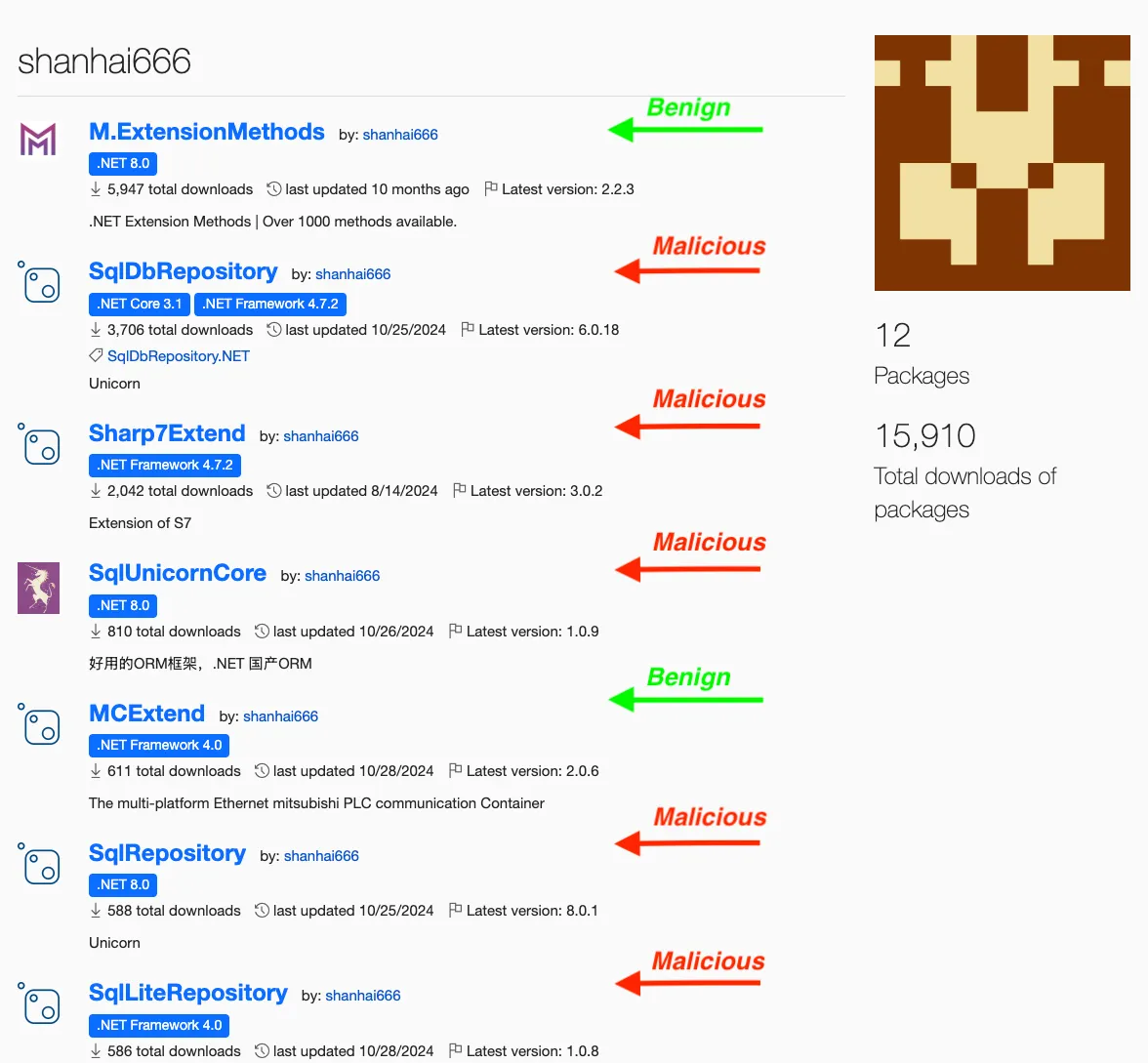 資安業者Socket近日看到9個惡意NuGet套件,攻擊者主要鎖定工業環境的設備而來,這些套件在2023至2024年發布,並在受害設備的資料庫注入會延遲執行的有效酬載,一旦惡意程式啟動,有機會在資料庫查詢過程中,強制終止主機應用程式的處理程序運作。這些套件都透過相同的作者發布,總共被下載9,488次。NuGet是微軟為.NET平臺打造的套件管理系統,Socket於11月5日通報此事,NuGet表示,正在調查並設法移除。