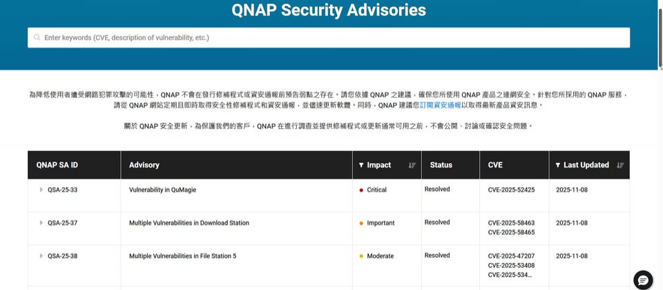 11月8日臺灣NAS業者威聯通(QNAP)發布11則資安公告,修補旗下多項產品的漏洞,其中又以10月下旬漏洞挖掘競賽Pwn2Own Ireland 2025揭露的資安漏洞,最受到矚目。為了展現對於這項競賽的支持,威聯通本次提供NAS設備TS-453E與路由器QHora-322。