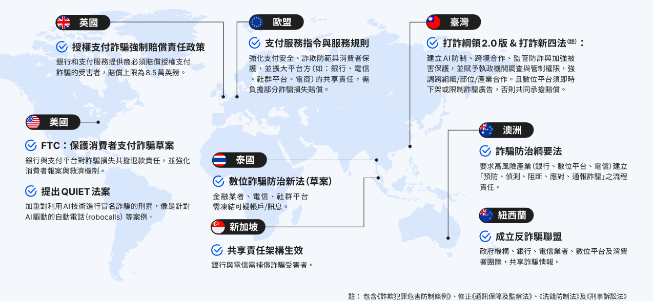 事實上,過去我們已經注意英國、美國、歐盟、新加坡有這方面的行動,最近泰國、澳洲、紐西蘭等國也展現積極強化打詐的決心。
