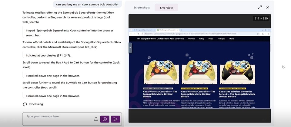 Fara-7B被設計成電腦使用代理,會直接讀取瀏覽器視窗截圖,推論下一步應該把滑鼠移到哪裡點擊、何時捲動頁面、在哪個欄位輸入文字,其不依賴無障礙樹(Accessibility Tree)等額外結構化資訊,而是盡量模擬一般使用者的實際操作方式。微軟預期,開發者可用Fara-7B協助填寫線上表單、搜尋與整理資訊、比價購物、訂票或管理雲端服務帳號,但前提是有人類監看與覆核,不是完全放手交給代理。