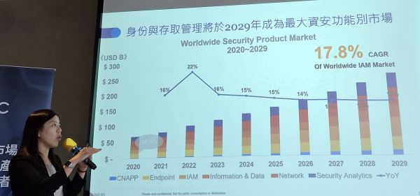 根據IDC的統計,2020年IAM(身分安全)的資安市場占比為16.6%,2025年已達到20.2%(臺灣市場占比約12%),超越資安產品中的端點安全產品,例如防毒、EDR,而到了2029年,預期將會超過資安硬體設備的市場規模達到23.2%(臺灣市場占比約16%),顯示身分安全成為企業的資安投資焦點之一。