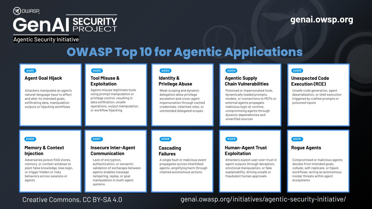 這兩年生成式AI應用起飛,已逐漸融入你我生活,相關的新技術也帶來了新的風險,過去經常發布10大資安風險的非營利組織OWASP,從2023年8月開始,彙整大型語言模型(LLM)的10大資安風險,去年底公布最新的2025版,隨著許多應用聚焦在AI代理,現在他們公布AI代理的10大資安風險。