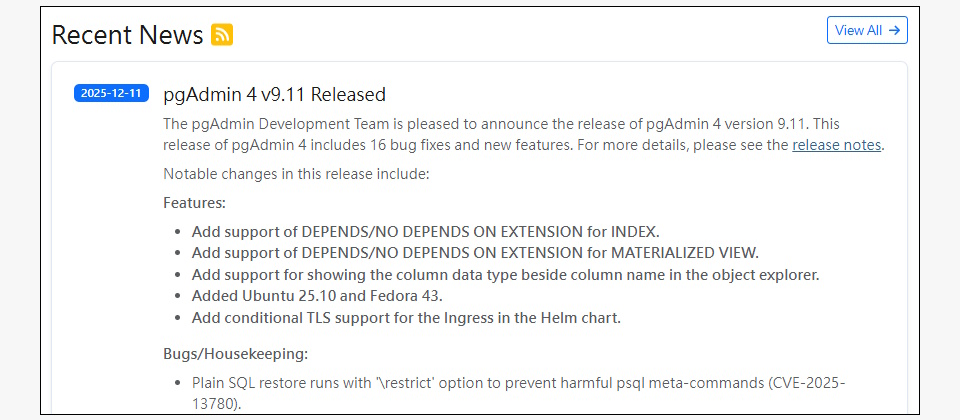CVE-2025-13780影響pgAdmin 9.10以及之前版本。NVD評定屬於高風險等級漏洞(CVSS分數8.8);不過PostgreSQL將其列為重大等級(CVSS分數9.1),顯示該漏洞一旦遭利用,後果可能相當嚴重。