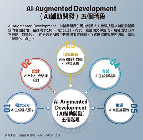 他表示,AI輔助開發不只是加速開發,而是重新定義軟體生產的方式,有了AI,軟體開發從專業任務變成「人機共創」的流程,更讓每一位知識工作者都能夠參與創新。
