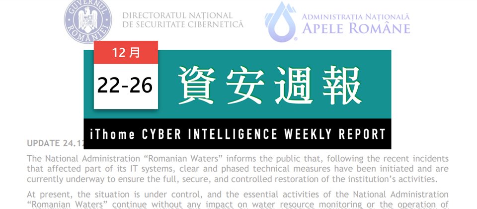 ●羅馬尼亞水務局向該國網路安全局通報遭勒索軟體攻擊,近千個ICT系統受影響,調查發現駭客濫用Windows內建的BitLocker資料保護機制來發動惡意加密。