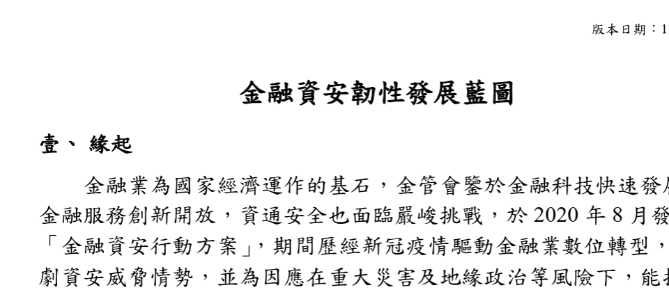 金管會持續加強金融業資安管理,從2020年首次發布金融資安行動方案1.0開始,2022年發布行動方案2.0在今年底到期後,金管會今天(12/30)發布「金融資安韌性發展藍圖」,描繪我國金融業未來4年強化資安治理發展方向,例如鼓勵業者資安左移,將安全納入設計,並將研擬金融業AI系統安防指引,加速導入零信任架構等等。