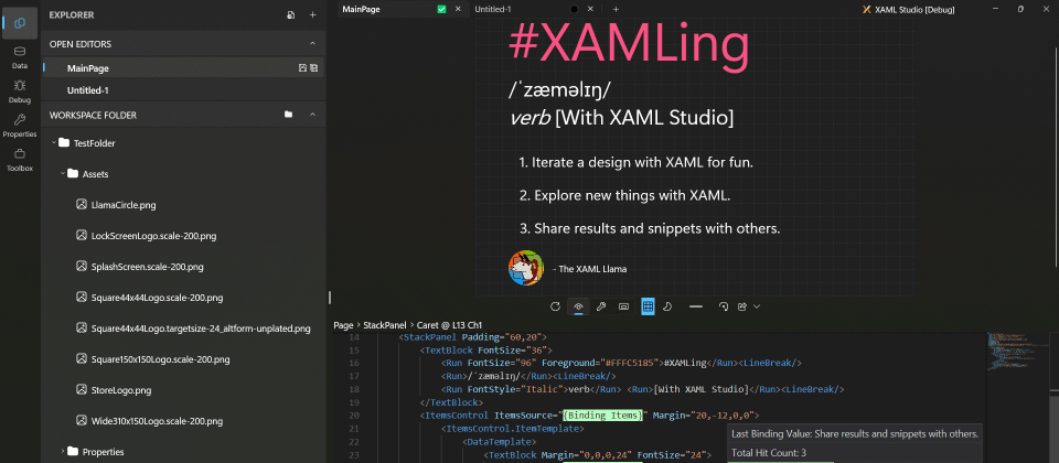 XAML Studio是一款WinUI開發的獨立工具,讓開發者不必先把程式整合進專案,就能用即時編輯與互動預覽快速驗證XAML版面與元件行為,再把驗證過的XAML內容複製回Visual Studio專案整合。Michael Hawker也提醒,Microsoft Store目前仍以1.1版作為最後一次公開釋出,近年的改版與功能實驗主要累積在dev分支的v2程式碼庫。