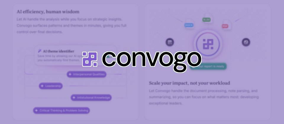 Convogo主要業務是提供幫助高階主管教練、顧問、人力資源等專業角色自動化領導力評估、回饋報告等工具的企業應用平臺。該公司據稱已和數千家企業顧問及「領導人才發展」公司合作過。