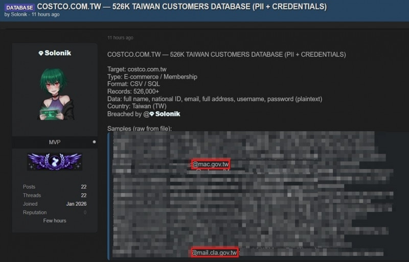 駭客兜售52萬筆臺灣好市多會員個資,業者澄清:非該公司會員資料