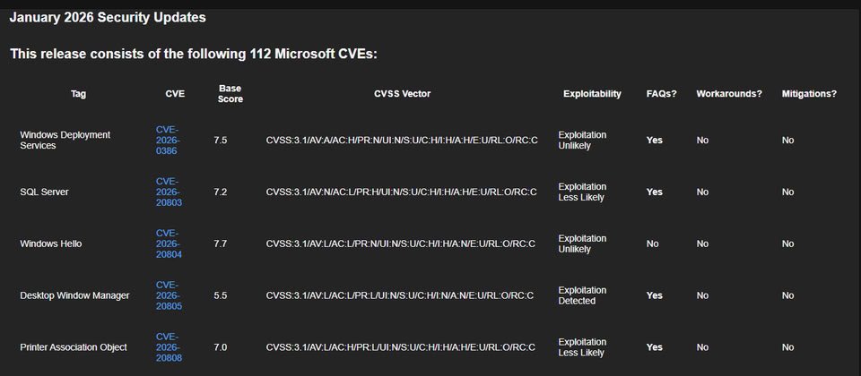 1月13日微軟發布本月例行更新(Patch Tuesday),針對旗下Windows作業系統、Office辦公室套裝軟體,以及Azure雲端服務與開發工具,修補112個安全漏洞,較上個月57個多出一倍。值得留意的是,已有遭到利用與細節被公開的零時差漏洞,用戶應儘速採取行動因應。