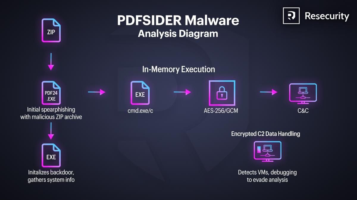 資安公司Resecurity揭露名為PDFSider的惡意軟體,駭客在一家名列財星前百大的企業使用DLL側載手法,透過名為cryptbase.dll的檔案,繞過防毒軟體與EDR系統的偵測,將PDFSider充當後門進行C2通訊。他們發現攻擊活動出現APT駭客常見的特徵,藉由隱密執行、偵測虛擬機器(VM)環境,以及使用加密通訊機制,因此認定背後的主使就是APT駭客。
