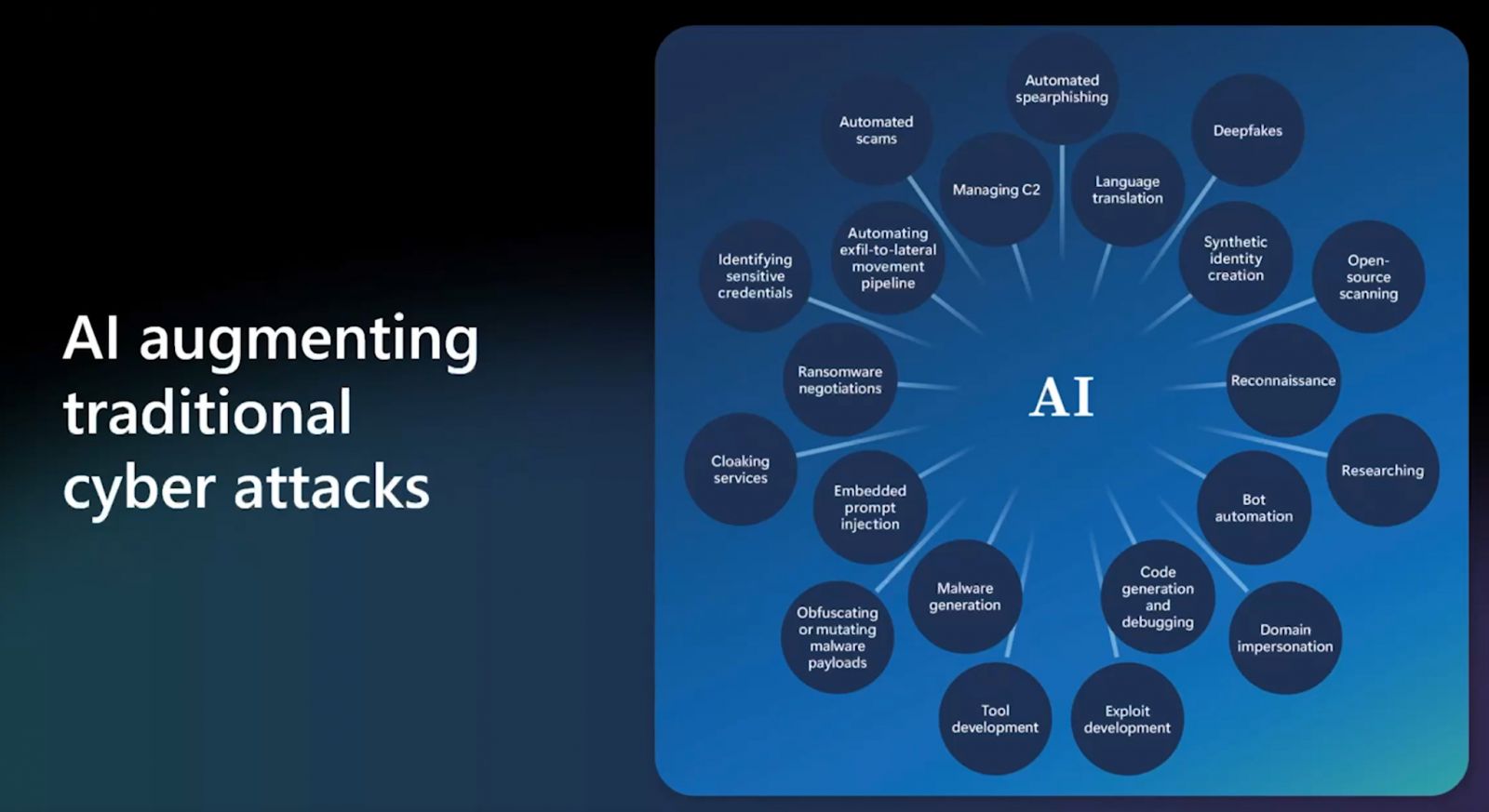 以網路釣魚為例,微軟觀察到,AI已使網路釣魚攻擊的點擊率提高4.5倍,而且2025年的手段已不局限於電子郵件,攻擊者會透過Teams等協作工具直接撥打電話,冒充IT人員要求存取權限;在管理C2伺服器方面,過去需由人工逐步操作的攻擊流程,現在只需將數據餵給AI就能自動執行;在網域冒充方面,過去攻擊者必須自行尋找可用網域,現在AI縮短了這類作業的時間與成本。