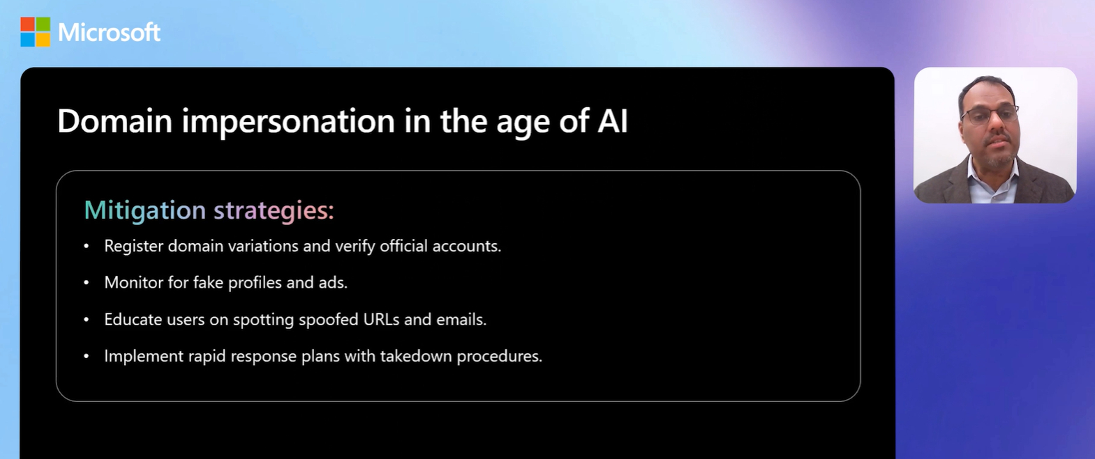 這樣的態勢意味著,網域冒充情形將更為普遍。我們該如何應對?Anujh Tewari提出4大建議,並說明這也是微軟的經驗與作法,可作為企業因應相關威脅的參考。這4大建議是: