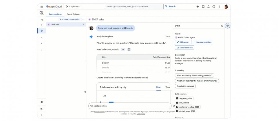Google先前已在Looker提供的對話式分析能力,並把以Gemini模型為核心的推理與查詢生成能力帶進BigQuery環境。官方強調該功能不只是聊天介面,而是能利用資料表結構、後設資料與自訂指示來生成SQL,避免在缺乏脈絡時以通用假設硬套欄位與指標口徑。