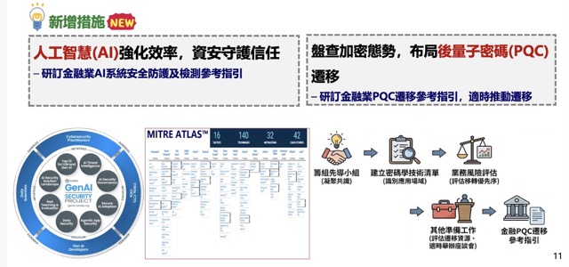 早在去年7月,金管會就找來幾家金融機構,發起PQC遷移先導計畫,目前正在持續建立密碼學技術清單,作為金融機構盤點所用加密技術之用,包括網路會議、硬體設備及軟體套件的加密等,方便金融機構從多面向來評估安全等級和可能的業務風險。金管會也計畫開始培訓技術人力、調查主要供應商、提升加密敏捷性和訂定系統汰換採購策略等,最快今年上半年就會公布PQC遷移參考指引,再依量子電腦和PQC發展成熟度,來安排遷移作業。