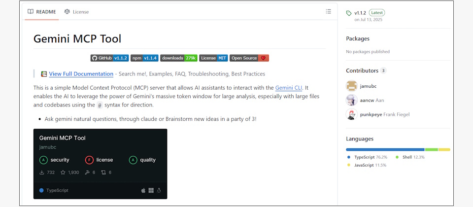 Gemini MCP Tool的設計目的,是讓AI助手可透過MCP伺服器,與Gemini的命令列工具Gemini CLI互動,以支援大型檔案與程式碼庫分析等應用情境。該工具由第三方社群維護,屬於非官方專案,並以MIT授權方式釋出。