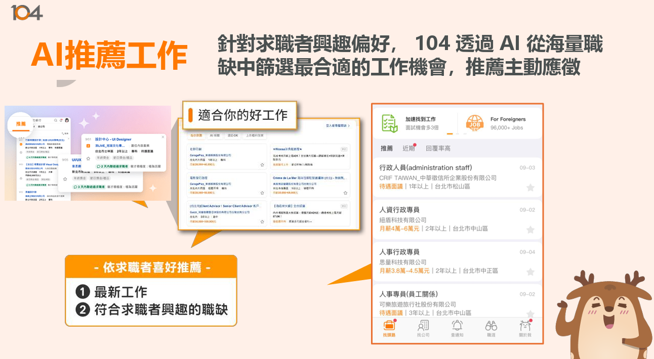 實際成效上,透過AI推薦工作功能獲得企業面試邀約的機率,是求職者自行搜尋職缺的3.2倍。