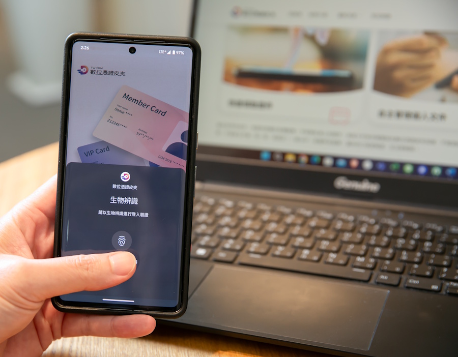 民眾使用數位憑證皮夾App,可以和手機上的生物特徵辨識綁定,例如指紋或臉部辨識,來確保啟動數位憑證皮夾App的用戶身分安全,因此當手機不慎遺失,可避免數位憑證皮夾遭到他人冒用。攝影/洪政偉