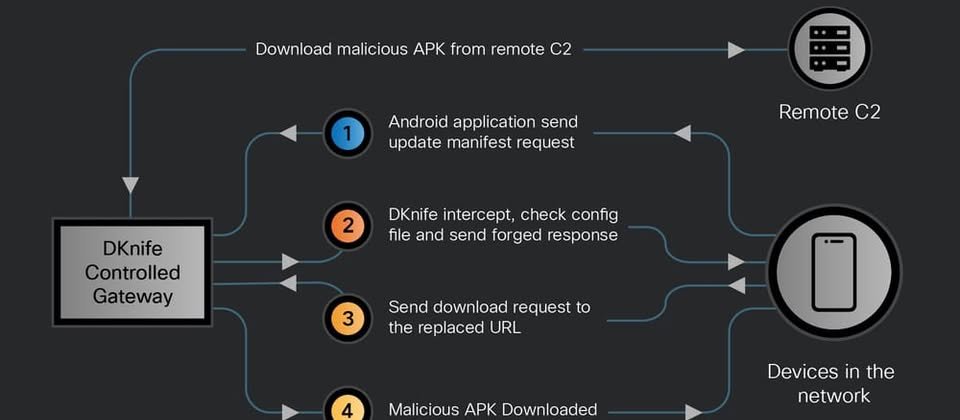 調查發現,DKnife常被用來攔截合法的軟體下載或應用程式更新流程,並在傳輸過程中置換為惡意程式。Talos指出,該框架曾被用來散播多款已知後門,包括ShadowPad、DarkNimbus等惡意程式,顯示其用途已超出單純監控,具備實際入侵與長期滲透能力。此模組化框架的攻擊目標,涵蓋多種裝置,包含電腦、行動裝置,以及物聯網裝置。