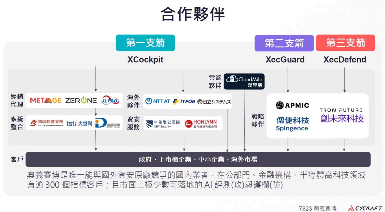在三大資安產品的市場推廣上,奧義智慧多管齊下,持續號召臺灣本土與海外的廠商與其合作,他們在創新板上市前業績發表會,也首度公開目前的合作生態系。