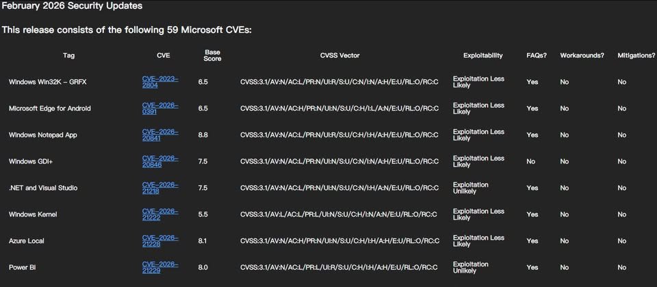 2月10日微軟發布本月例行更新(Patch Tuesday),總共修補59個漏洞,較一月的112個明顯減少。不過,這當中有6個已被積極利用的零時差漏洞,用戶需盡快採取修補或緩解的行動。