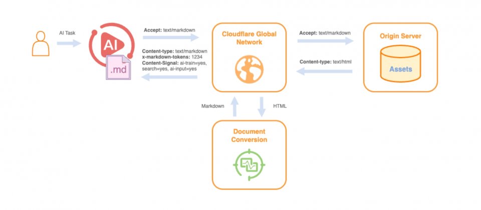 Cloudflare推出Markdown for Agents服務,主打以HTTP內容協商機制,讓AI爬蟲與AI代理在送出請求時透過Accept表明偏好text/markdown後,針對已啟用該功能的網站,由Cloudflare網路在可行時把來源網站的HTML即時轉換為Markdown再回傳,降低AI系統擷取網頁內容時的前處理負擔。