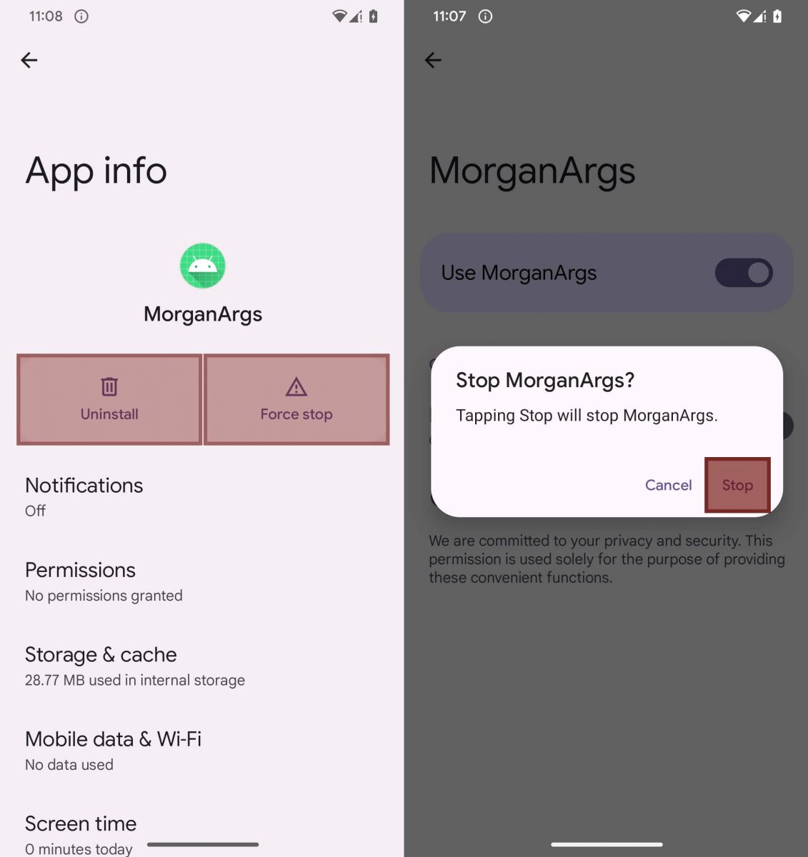 值得留意的是,駭客也透過無障礙服務,阻撓受害者移除或停用惡意程式,具體作法是在特定螢幕區域加上透明的覆蓋區域,使用者看到的操作介面同於一般應用程式,不過,若按下「移除」或「強制停止」等按鈕,將會無法執行這些操作。