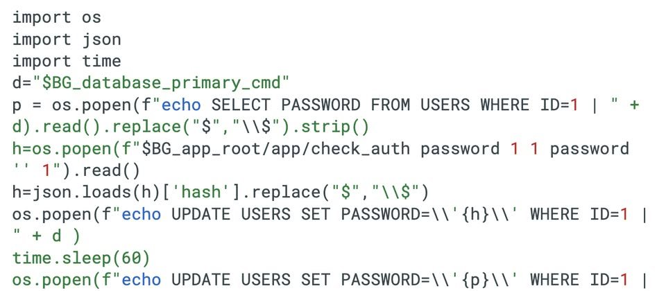 Unit 42表示他們正在著手調查多家遭到漏洞利用攻擊的受害公司,並指出部分攻擊者得逞後,曾透過Python指令碼短暫(60秒)接管管理員帳號,接著刪除特定檔案以隱匿行蹤。基本上,上述指令碼會查詢特定資料庫,擷取管理員密碼雜湊資料,經過一分鐘的休眠,再將系統原本的密碼雜湊值還原,以免真正的管理員察覺異狀。