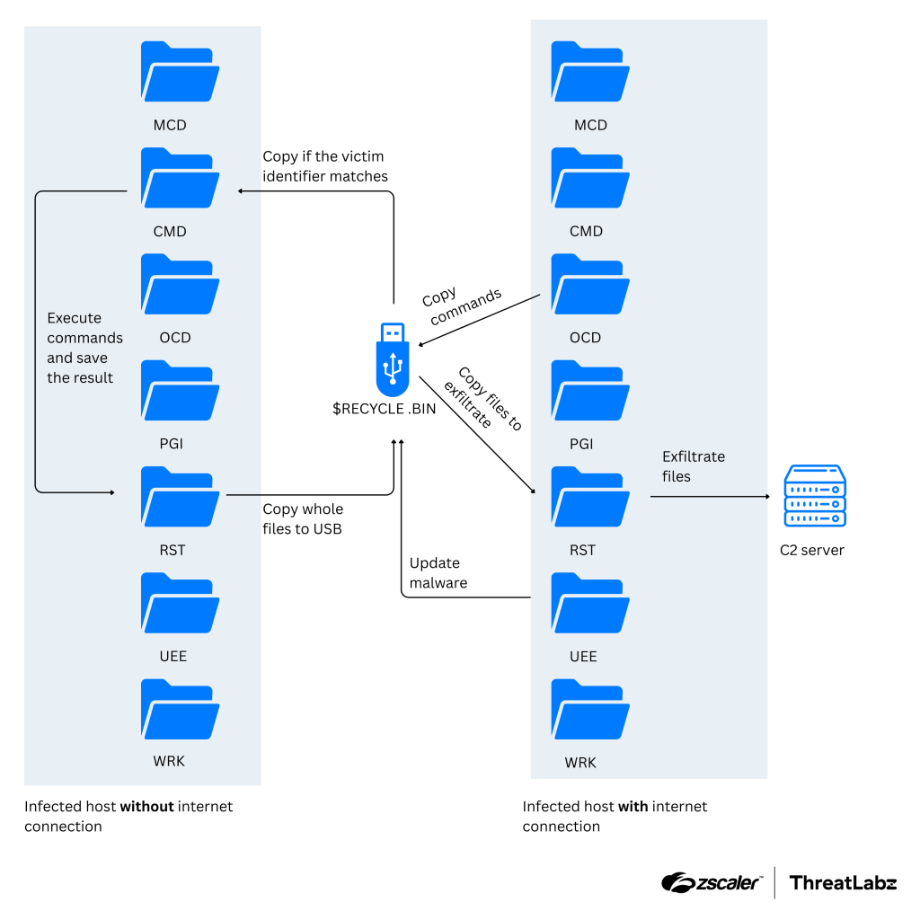 國家級駭客鎖定特定國家的隔離網路環境從事攻擊,在去年也發生事故。IBM威脅情報團隊X-Force揭露中國駭客組織Mustang Panda(Earth Preta、RedDelta、Hive0154)去年7月的攻擊活動,過程裡使用USB蠕蟲SnakeDisk,企圖在受害電腦部署後門程式Yokai,根據駭客鎖定泰國,以及當時發生的政治事件,目標可能是泰國政府的隔離網路環境。