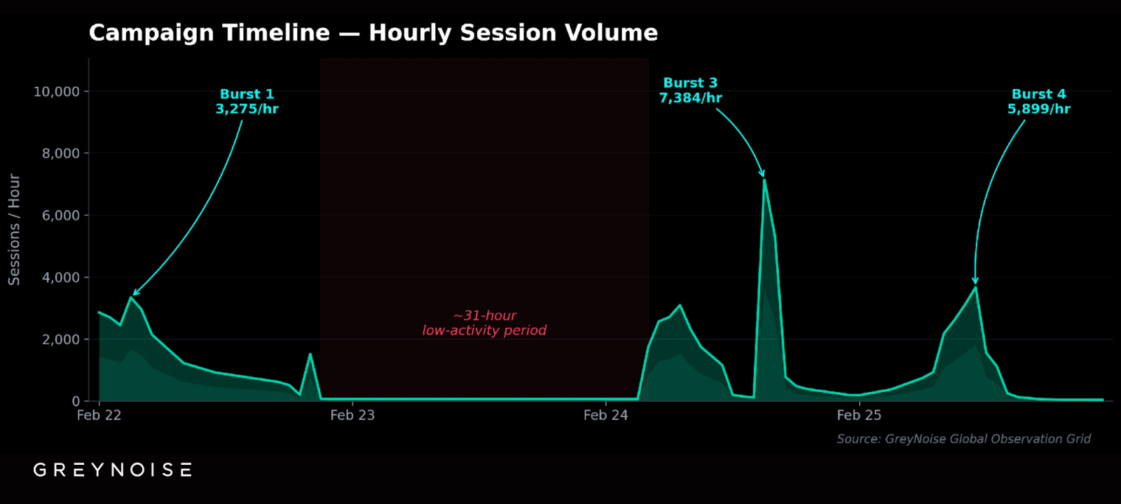 根據觀測數據,這波持續四天的偵察掃描,源自全球20個自治系統中的4,305個獨立IP位址,總計產生84,142次連線。有別於常見的高頻且集中的無差別掃描,此次行動呈現更高的隱蔽性與操作成熟度。