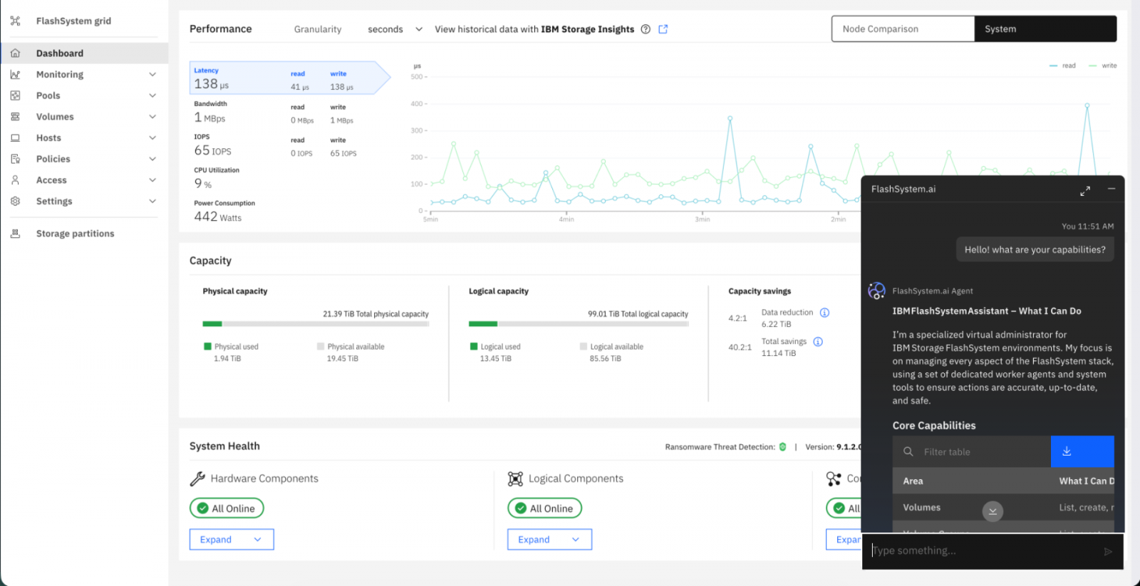 FlashSystem.ai的操作介面