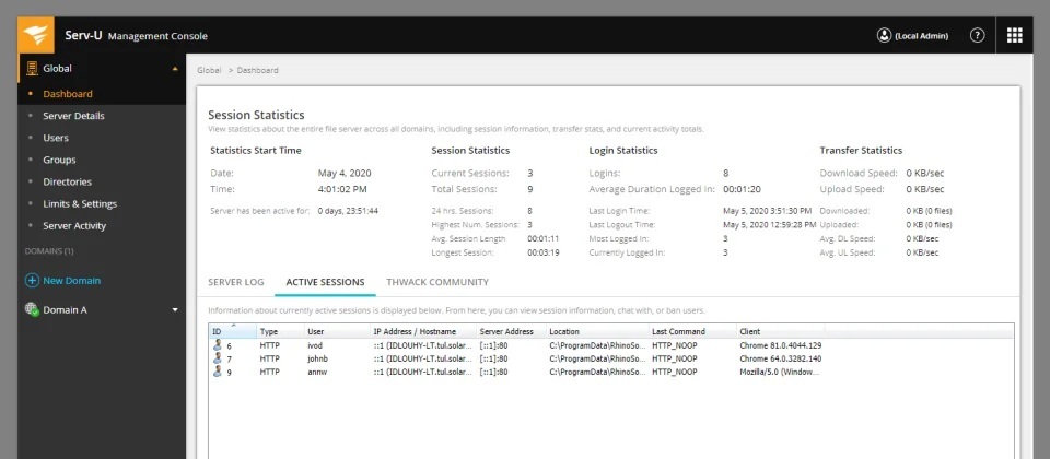 Serv-U為歷史悠久的檔案傳輸伺服器軟體,支援FTP、FTPS、SFTP、HTTPS等通訊協定,可用於大型檔案的傳輸與交換。
